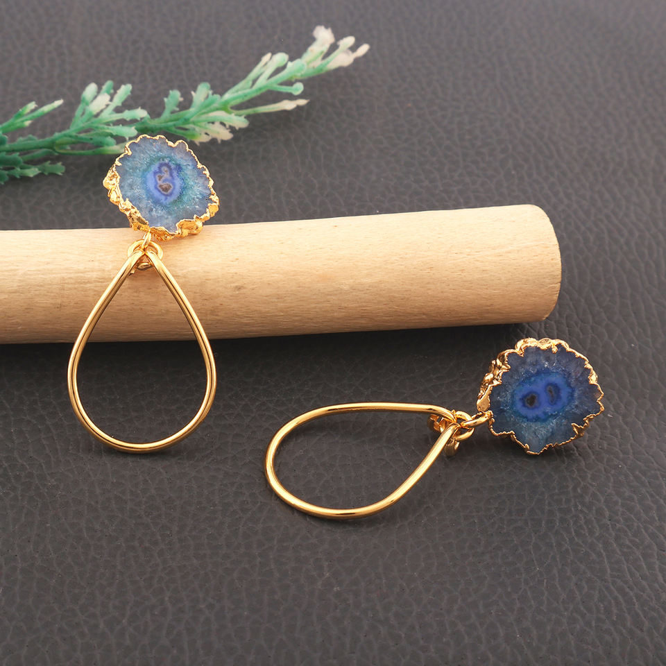 ต่างหูควอตซ์แสงอาทิตย์รูปทรงอิสระต่างหูหยดน้ำทองเหลืองชุบทองห้อยต่างหูห้อยตุ้งติ้งขายส่ง