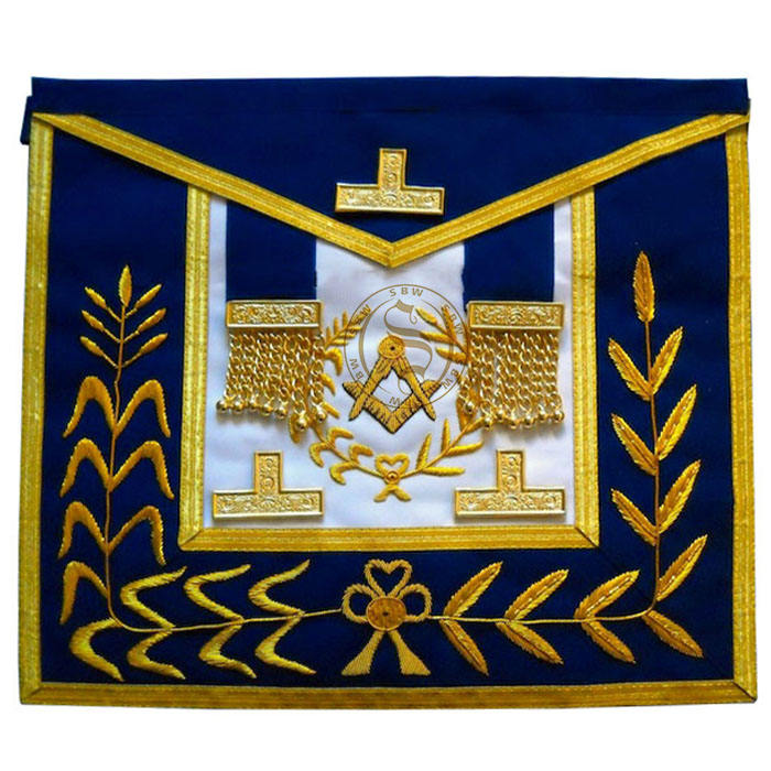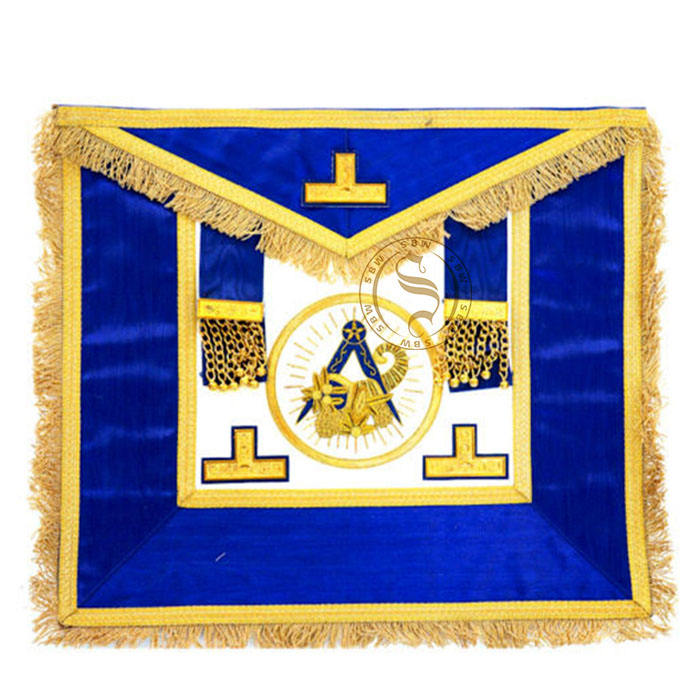 Freemason Blue Lodge Blue Silky SATIN Borders ผ้ากันเปื้อนต้นแบบ Mason กับพวงหรีด | Masonic regalia Accessories