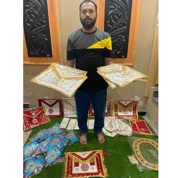 ชุดเครื่องราชอิสริยาภรณ์ฟรีเมสัน ระดับมาสเตอร์เมสัน แกรนด์เมสัน รีกาเลีย โพรวิชันลอนดอน แกรนด์แร็ค ชุดคลุมและปลอกคอ ทำด้วยมือจากหนังแกะ ดีไซน์สวยงาม