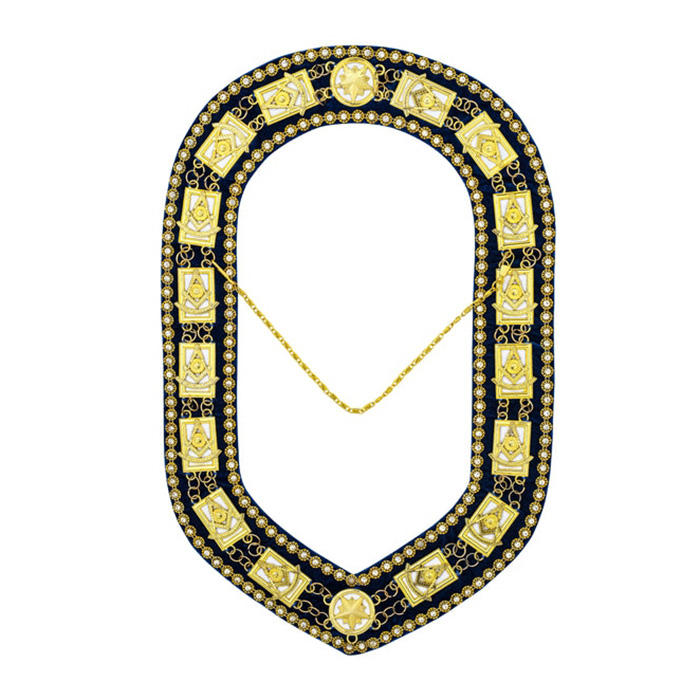 ฟรีเมสันผ่านมาเป็นสายคล้องคอสีน้ำเงินสไตล์พื้นเมืองวัสดุผ้าไหมกำมะหยี่สีฟ้าและพลอยเทียมสีทอง