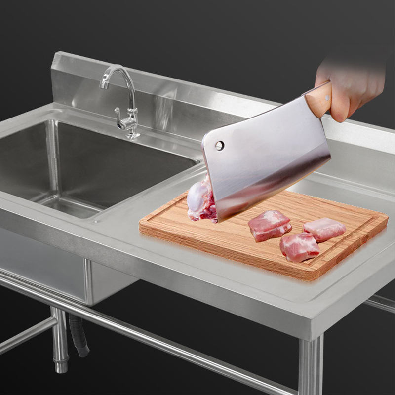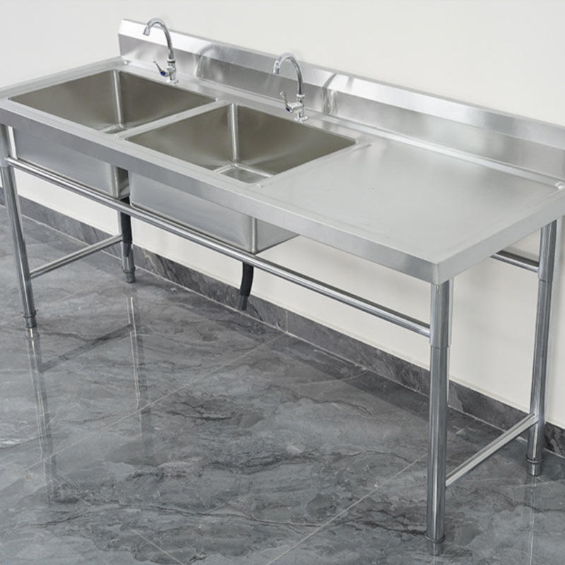 อ่างล้างจานสแตนเลสสตีลคู่แบบตั้งได้อ่างล้างจานอเนกประสงค์304พร้อมกระดานระบายน้ำสำหรับห้องครัวเชิงพาณิชย์งานซักรีดแฮนด์เมด