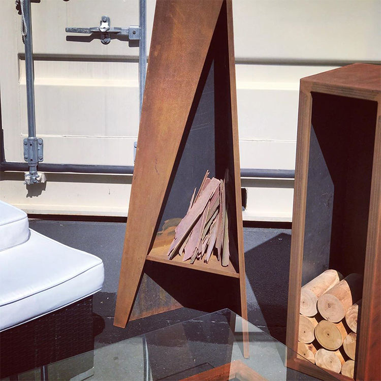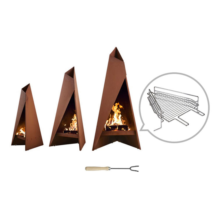 เตาผิงไม้กลางแจ้งแบบตั้งพื้นทำจากเหล็กคอร์เทน ได้รับการรับรองมาตรฐาน CE ผิวสัมผัสสนิมธรรมชาติ เหมาะสำหรับห้องนั่งเล่นและอพาร์ตเมนต์