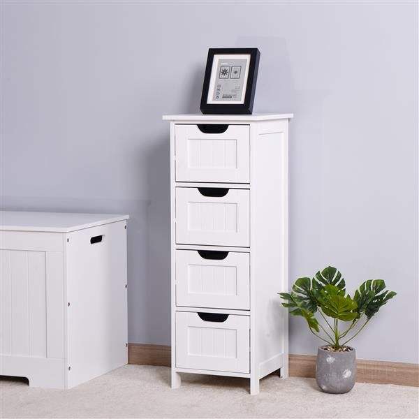 ตู้เก็บของในห้องน้ำสีขาวแบบตั้งได้พร้อมลิ้นชักเฟอร์นิเจอร์ในห้องน้ำ
