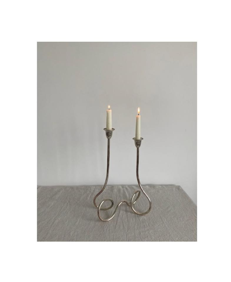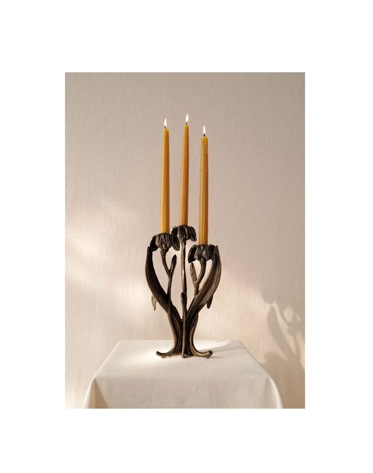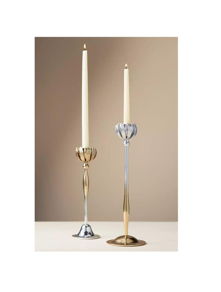 เชิงเทียนโลหะแบบตั้งเดี่ยวที่มีดีไซน์บิดและพื้นผิวของช่างฝีมือเหมาะสำหรับห้องโถงหรือการตกแต่งภายใน
