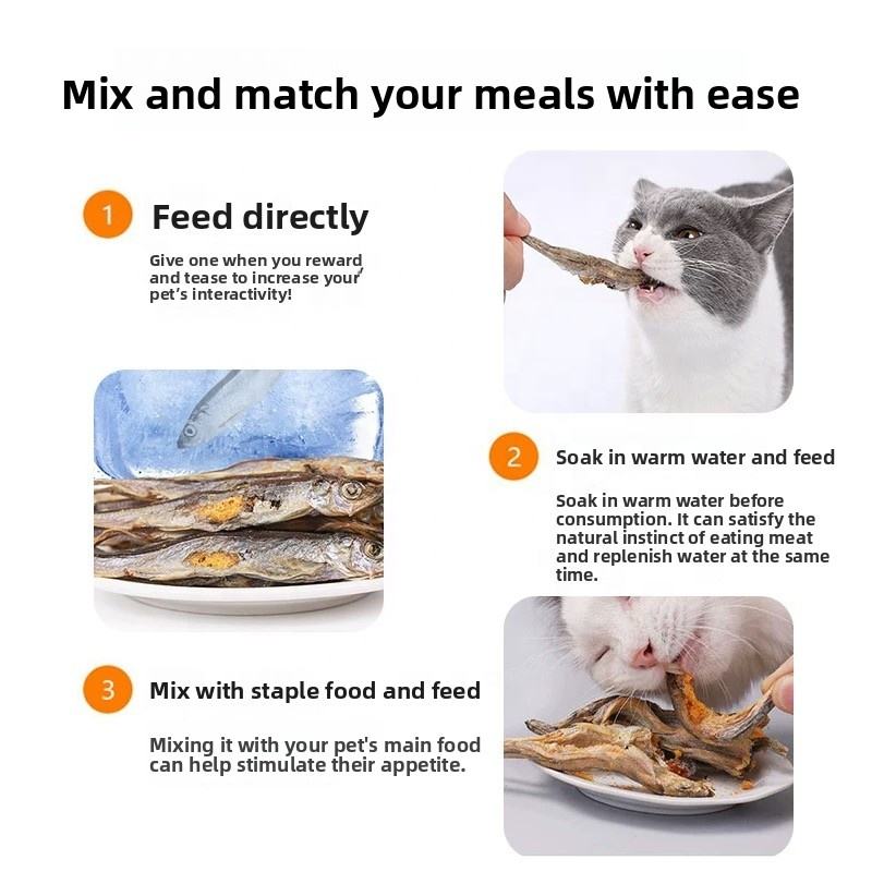 ขนมแมวอบแห้งแบบแช่แข็ง ปลาชิแช่แข็งแบบอบแห้ง ขายส่งขนมสัตว์เลี้ยงแบบอบแห้ง ขนมสุนัข อาหารสุนัข ปลาคาเปลนอบแห้งแบบแช่แข็ง