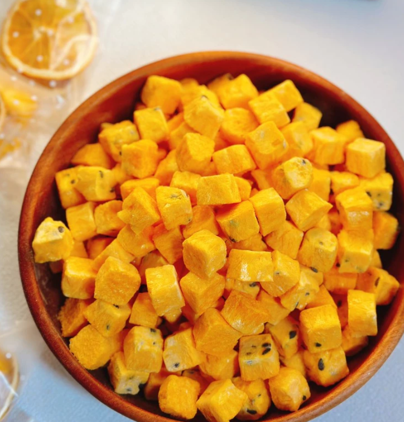 ก้อนเสาวรสอบแห้งแบบแช่แข็ง เกรดส่งออกเวียดนาม จำหน่ายส่งจำนวนมาก พร้อมรับผลิตฉลากสินค้าและแบรนด์ส่วนตัว