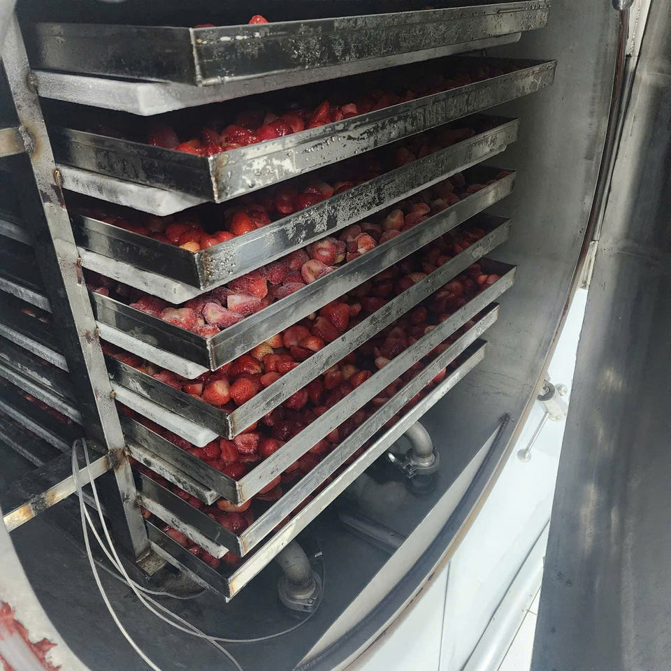 สตรอว์เบอร์รีอบแห้งแบบแช่แข็ง ทำจากผลไม้สดทั้งลูก สำหรับตกแต่งเบเกอรี่และผสมขนม ผู้ผลิตจากเวียดนาม บรรจุภัณฑ์สุญญากาศ