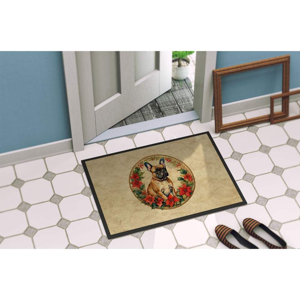 พรมเช็ดเท้าลายดอกคริสต์มาสบูลด็อกฝรั่งเศสพรมเช็ดเท้ากันลื่นในร่ม/กลางแจ้งพรมปูพื้นต่ำ18ชม. X 27W พรมหน้าประตูสำหรับทางเข้า