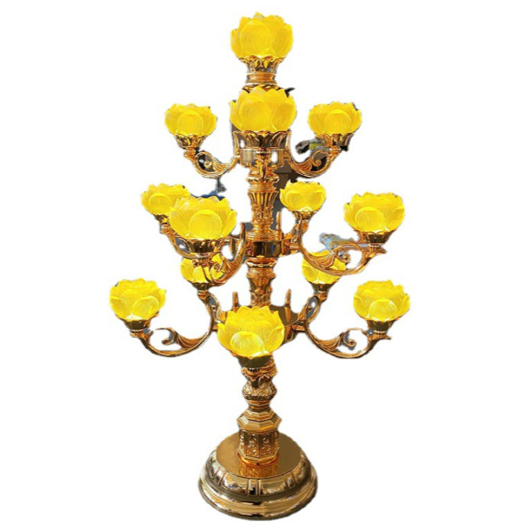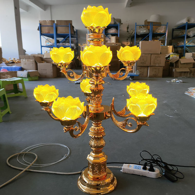 โคมไฟตั้งโต๊ะทองแดงลายกิ่งดอกไม้สไตล์ฝรั่งเศส โคมไฟดอกบัวสำหรับห้องนอน วิลล่า พระราชวัง แสงไฟวิเศษ โคมไฟตั้งโต๊ะทองแดงสำหรับห้องนั่งเล่น