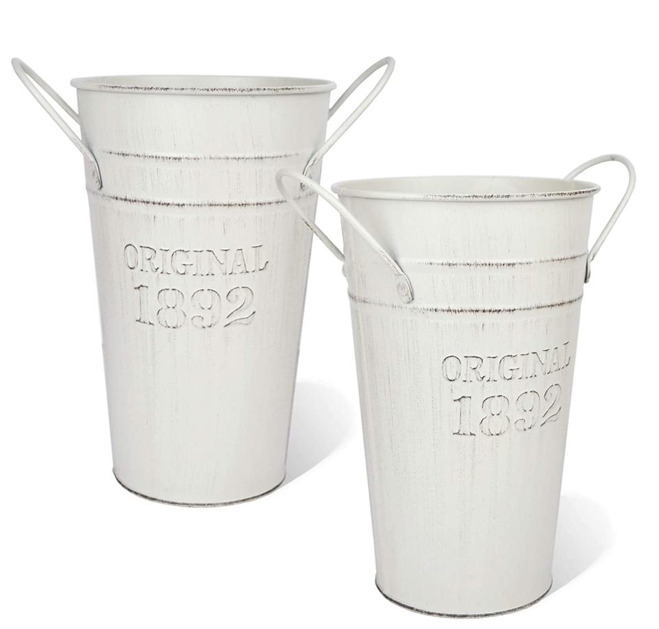 กระถางดอกไม้สไตล์คันทรีของตกแต่งบ้านแจกันดอกไม้สำหรับตกแต่งบ้านไร่ทำจากโลหะชุบสังกะสีสไตล์วินเทจ