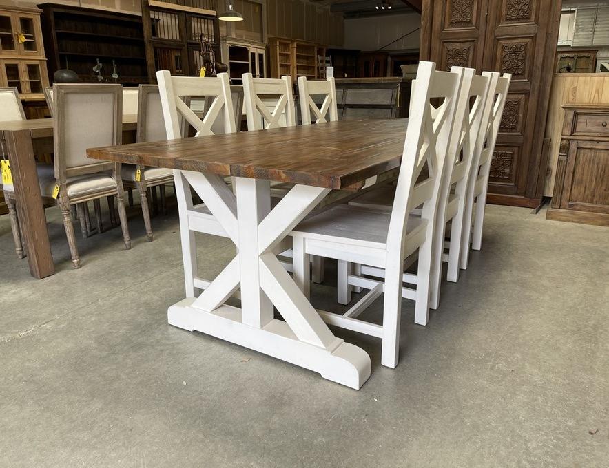 โต๊ะรีไซเคิลสไตล์อุตสาหกรรมเฟอร์นิเจอร์แนวชนบท,โต๊ะรับประทานอาหารทำจากไม้ธรรมชาติทำจากไม้สนเวียดนามสไตล์ประเทศฝรั่งเศส