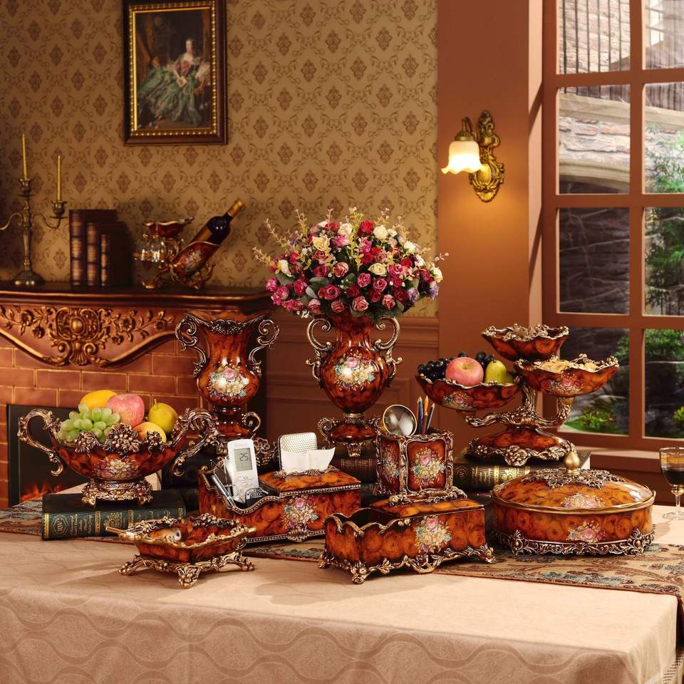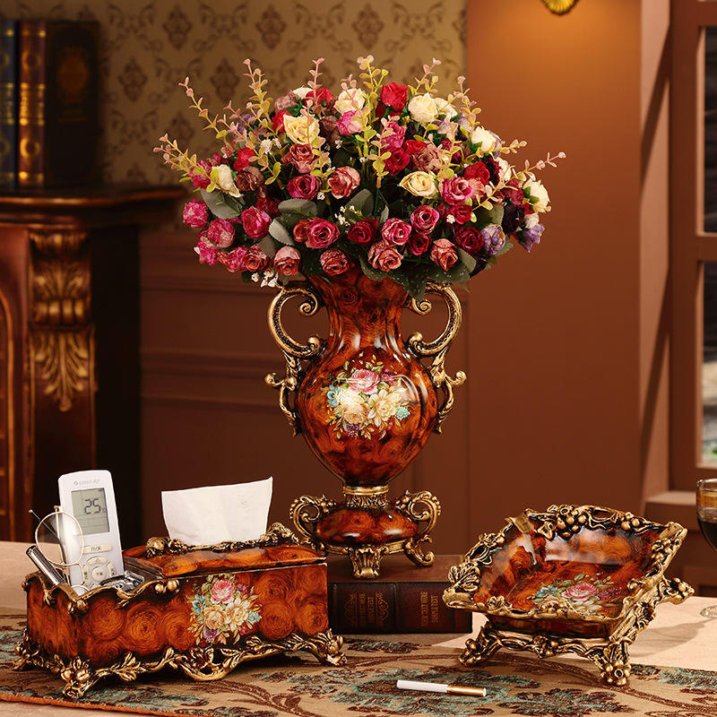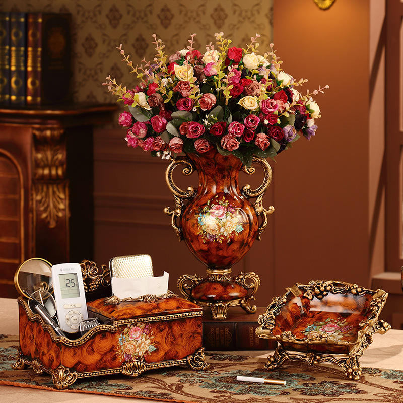 ชุดเครื่องประดับตกแต่งโต๊ะสไตล์ฝรั่งเศส ทำจากเรซิ่นลายไม้ ประกอบด้วยแจกัน กล่องใส่กระดาษทิชชู่ จานผลไม้ งานฝีมือสำหรับงานแต่งงาน เป็นมิตรกับสิ่งแวดล้อม