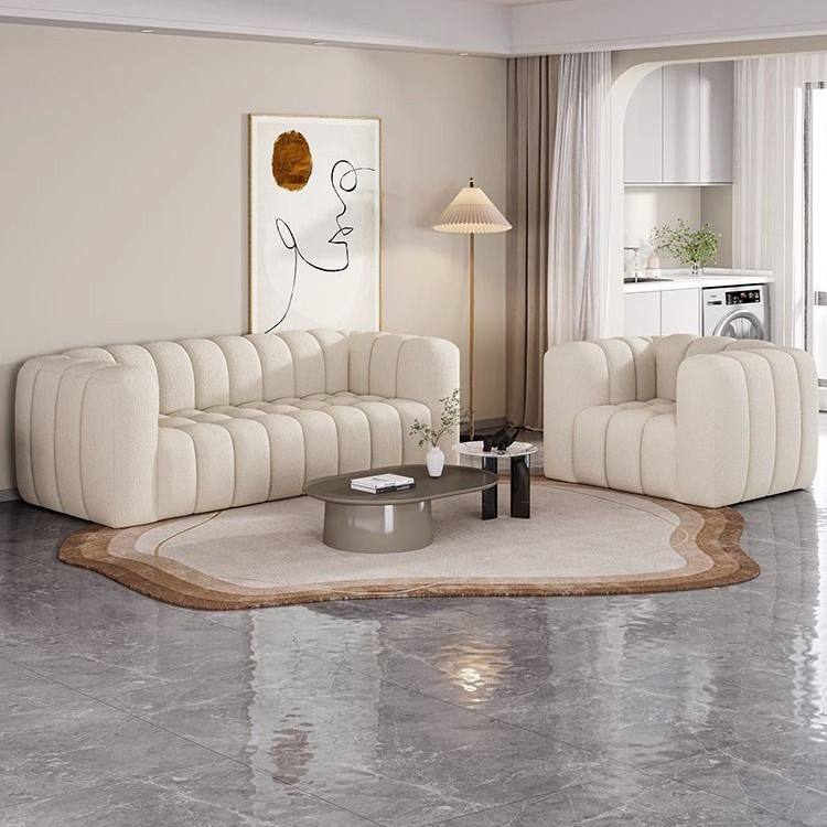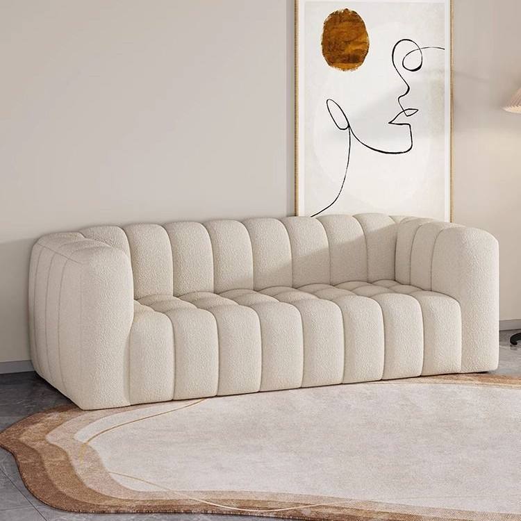 โซฟาสองชั้นสามที่นั่งทำจากผ้าทรายฝรั่งเศสแบบทันสมัยสำหรับห้องนั่งเล่นและวิลล่า