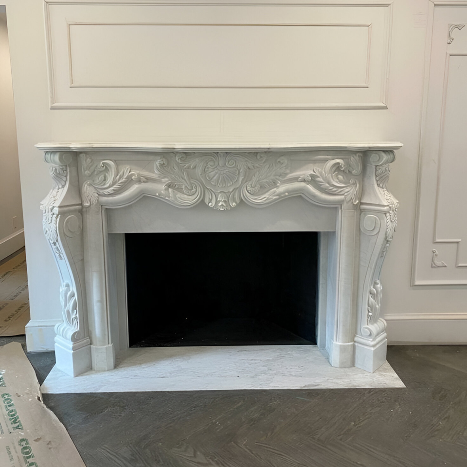Trending Marble Fireplace Mantel Custom Hand Carved Stone Surround Premium Quality Luxury Design Factory Wholesale Export