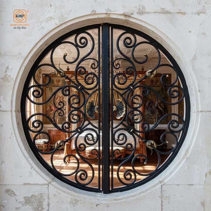 หน้าต่างเหล็กดัดลายฝรั่งเศส ป้องกันการโจรกรรม คุณภาพสูง ลายวินเทจ ปลอดภัย สำหรับโรงแรมและบ้าน