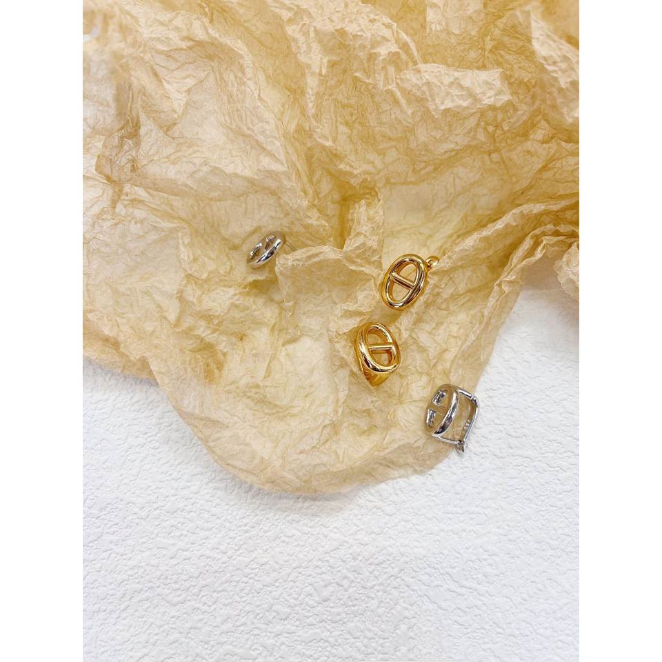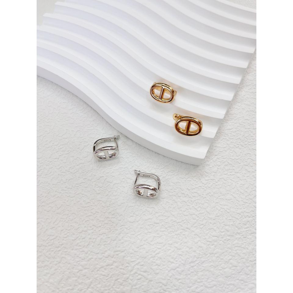 ต่างหูแบบเจาะจมูกหมูทำจากเงินสเตอร์ลิง S925ดีไซเนอร์ฝรั่งเศสทันสมัยเรียบง่ายเครื่องประดับแบบเฉพาะกลุ่มคลิปหนีบหูอเนกประสงค์