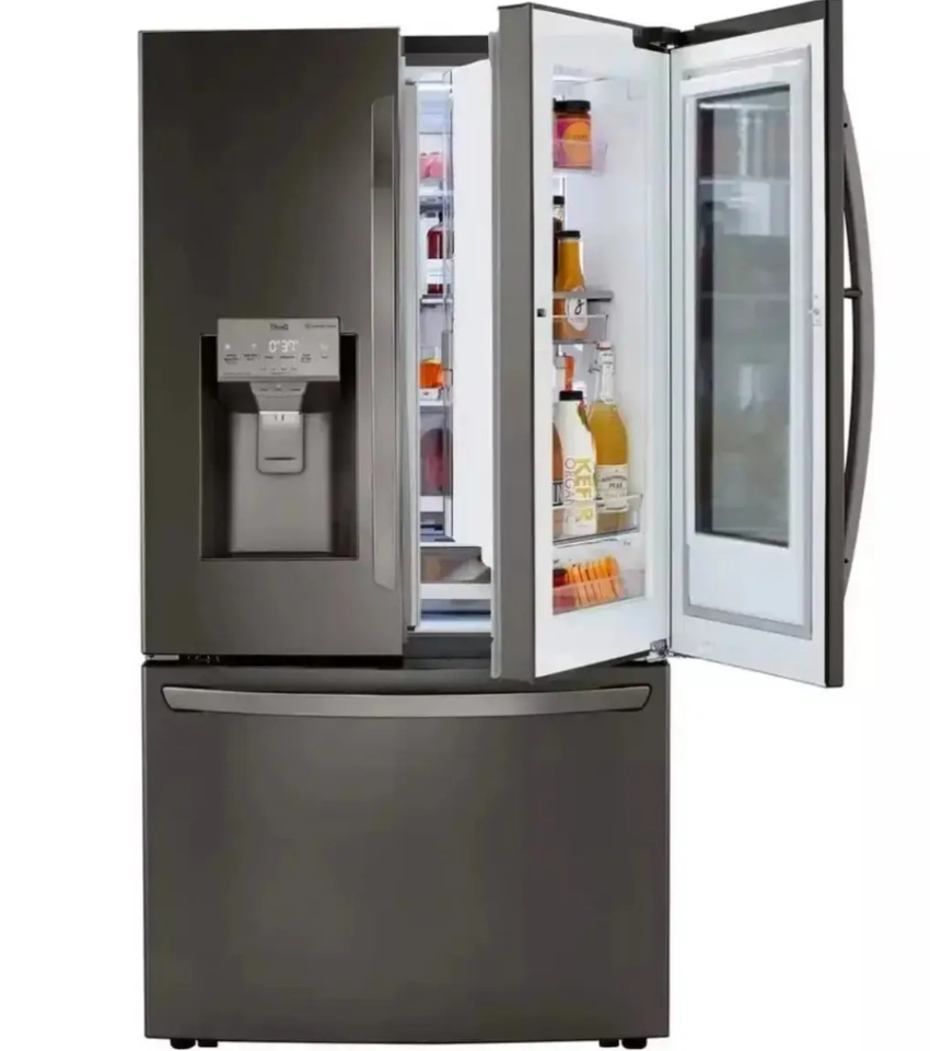 ตู้เย็นแบบประตูฝรั่งเศส สมาร์ทดอร์อินดอร์ ความลึกเท่าเคาน์เตอร์ ช่องแช่แข็งแบบสองอุณหภูมิ สำหรับครอบครัว พร้อมตู้จ่ายน้ำและน้ำแข็งภายนอก