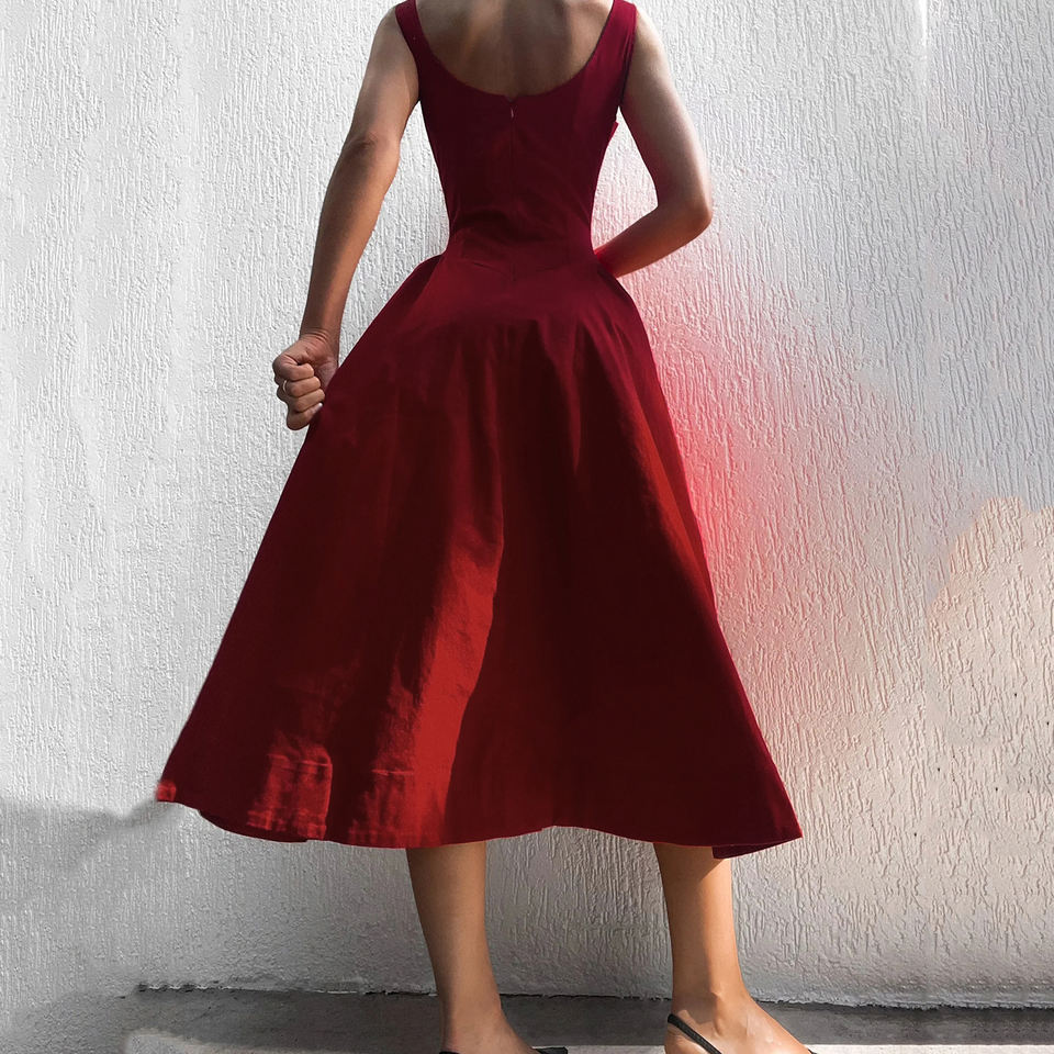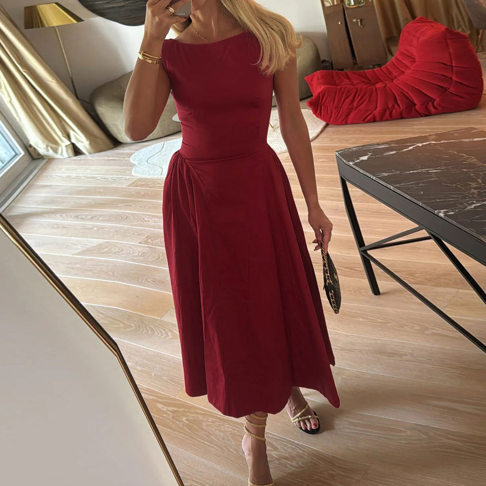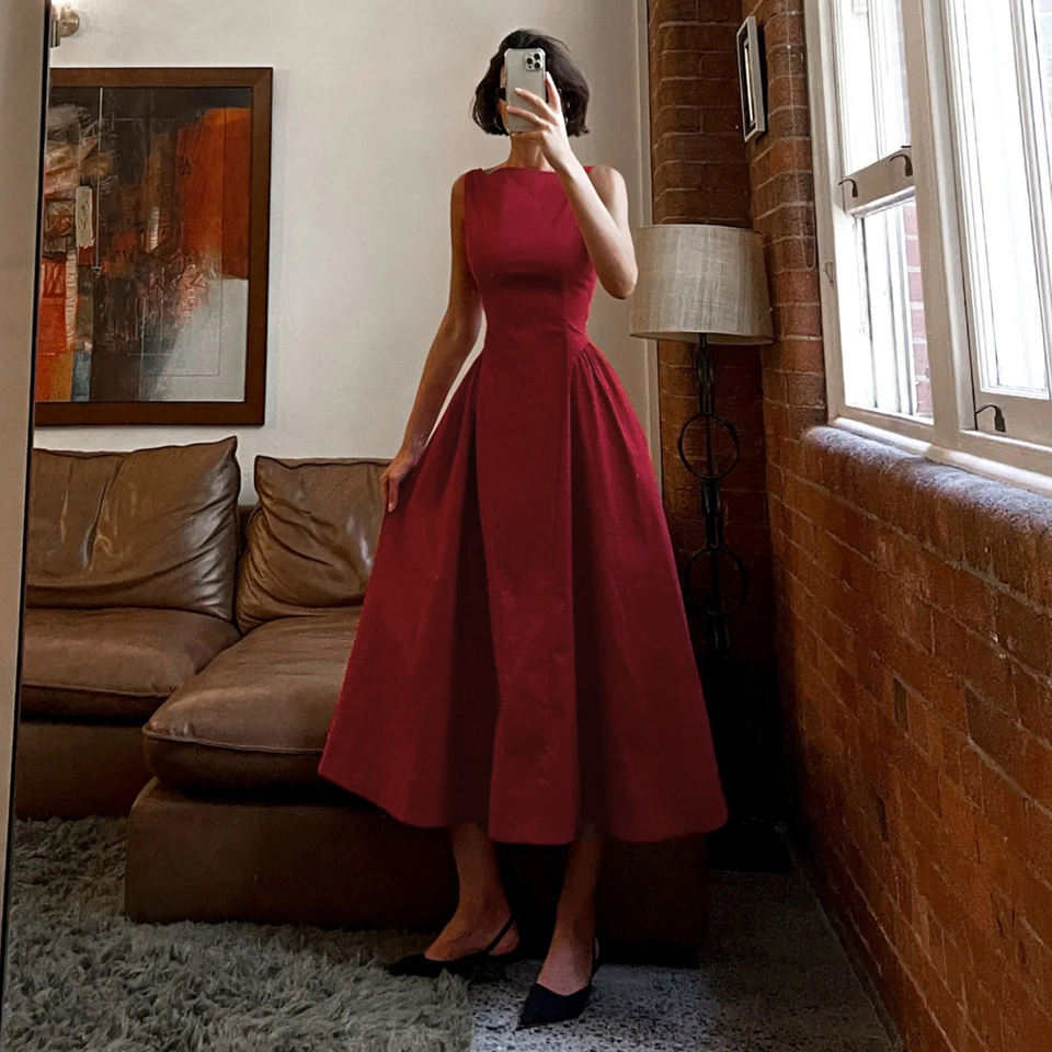 เดรสยาวทรงเมอร์เมดแบบไม่มีแขนสไตล์ฝรั่งเศสสำหรับผู้หญิง เอวสูง กระชับรูปร่าง สวยงาม