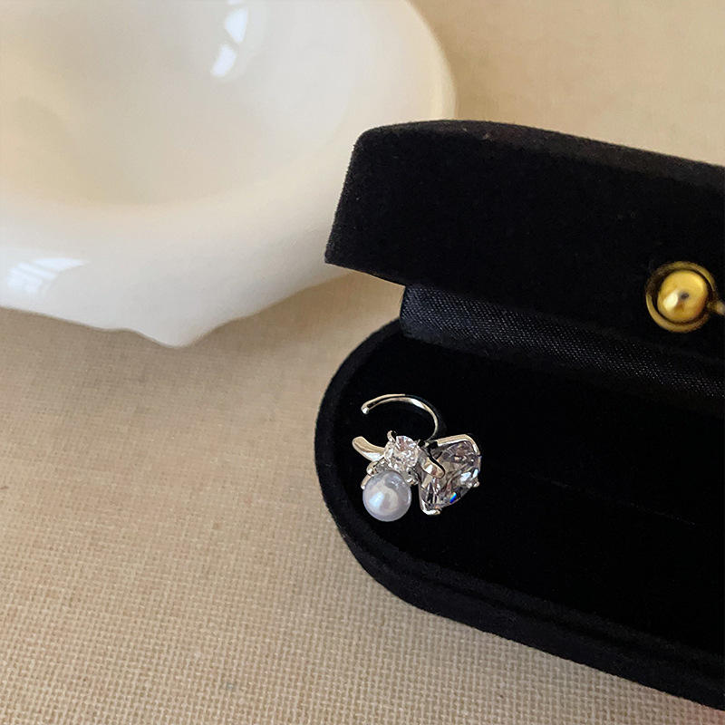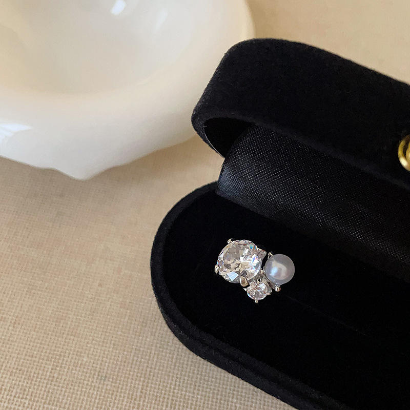 ต่างหูหนีบแบบฝรั่งเศส ประดับเพชรซิร์คอนและมุก สำหรับผู้หญิงที่ไม่มีรูหู ดีไซน์เฉพาะตัว ให้ความรู้สึกหรูหรา สไตล์วินเทจ