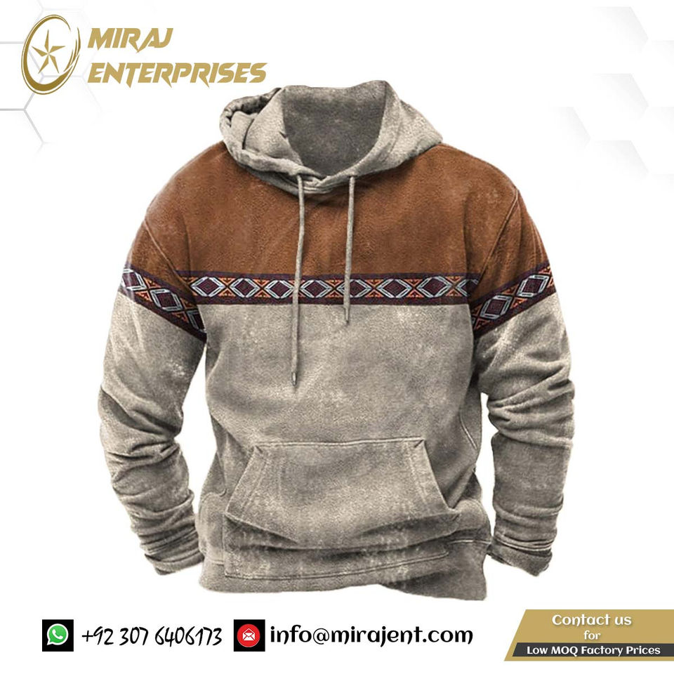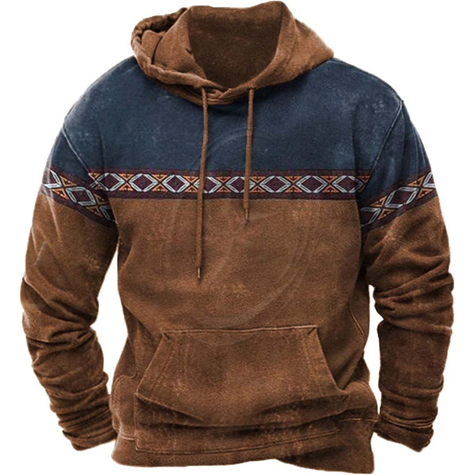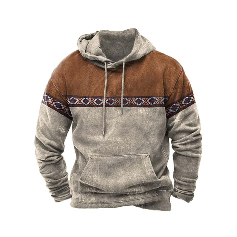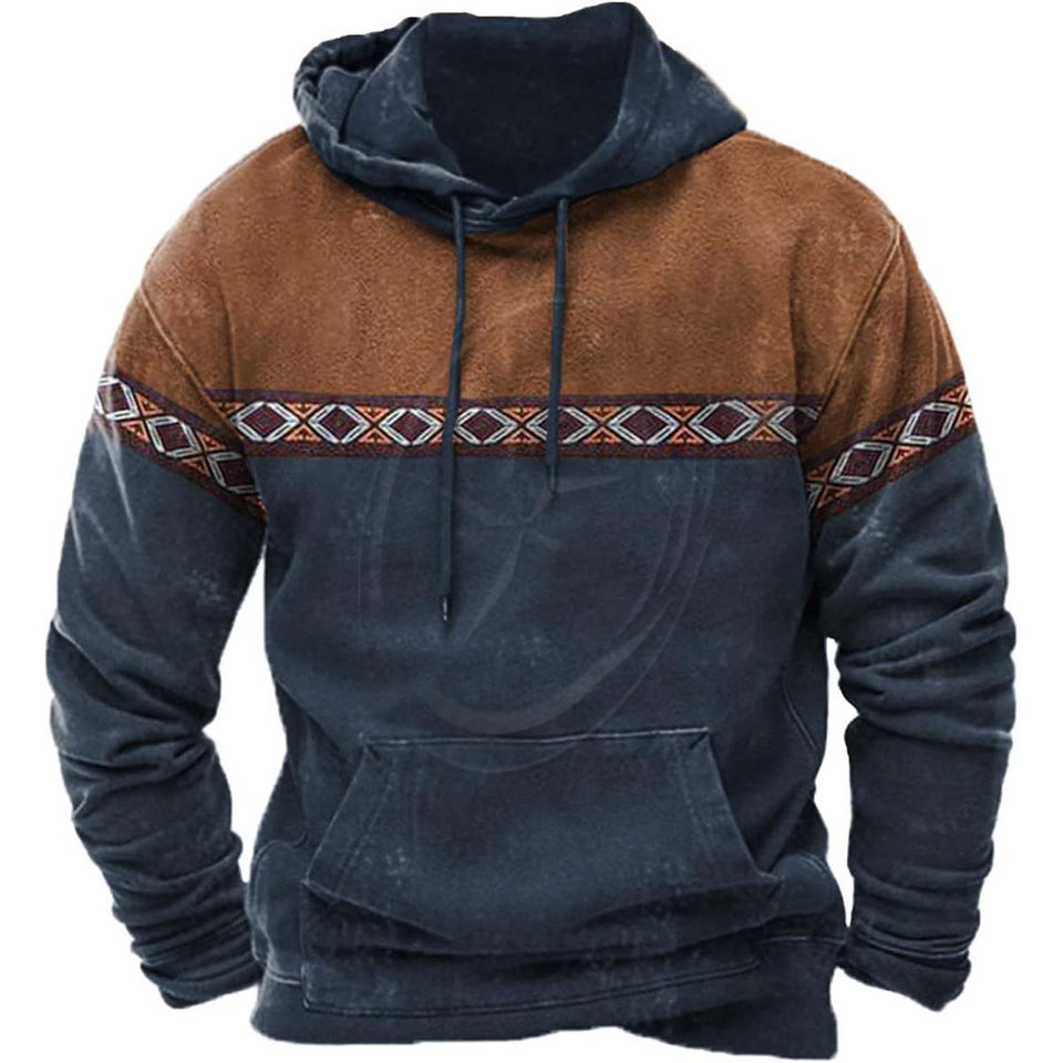 เสื้อมีฮู้ดลายขนแกะฝรั่งเศสสำหรับผู้ชายเสื้อแบบสวมหัวคอกลมแนวชนเผ่าแอซเท็กแบบตะวันตกระบายอากาศได้โอเวอร์ไซส์น้ำหนักเบาลายนูนขนาดใหญ่