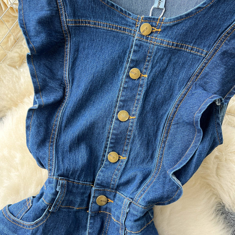ชุดเดรสคาวบอยสไตล์ฝรั่งเศสแบบเฮปเบิร์นสำหรับผู้หญิง ฤดูร้อน ช่วยให้ดูเอวเล็กลง ดีไซน์เก๋มีเอกลักษณ์ ดูมีสไตล์