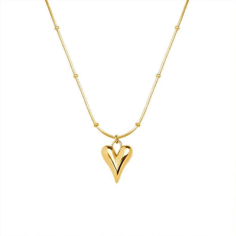 เทรนด์ฝรั่งเศส18K โช้คเกอร์ทองแท้ P575มินิมอลหรูหราแฟชั่นเรียบง่ายหัวใจสร้อยคอไทเทเนียมชุบเหล็กสแตนเลส