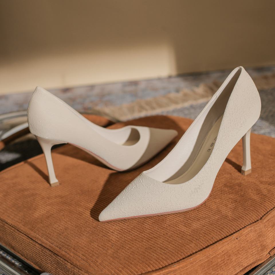 รองเท้าแต่งงานหนังแท้สำหรับผู้หญิงสไตล์ฝรั่งเศส-เกาหลี แบบสวม ปรับสายรัดได้ ปิดนิ้วเท้า ใส่ได้สองแบบ ส้นบางใหม่ สำหรับเจ้าสาว ส้นสูง