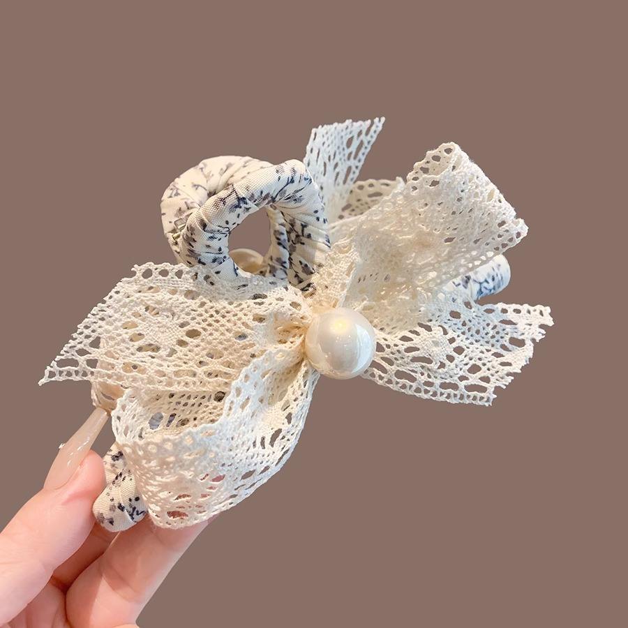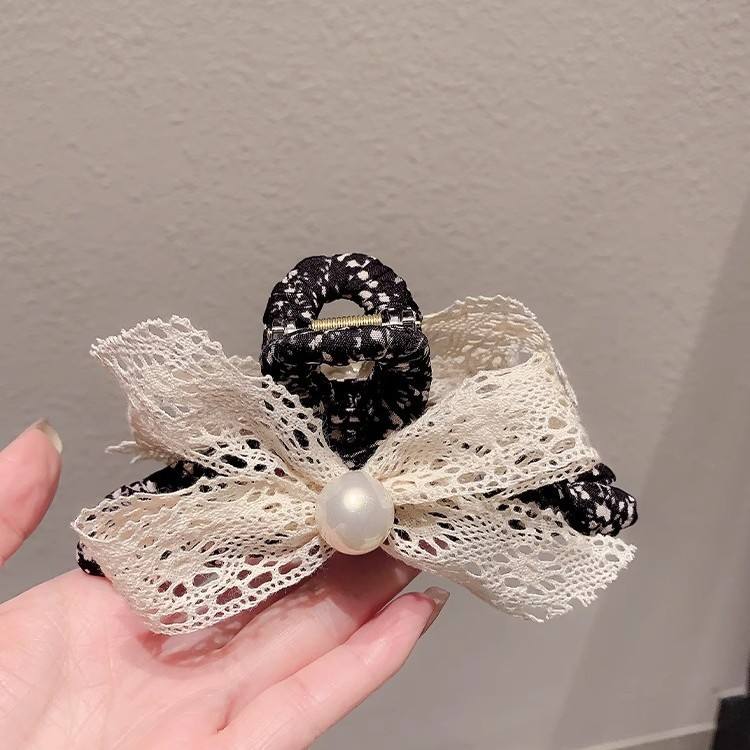 กิ๊บติดผมโบว์ลูกไม้ฝรั่งเศสสำหรับเด็กผู้หญิง กิ๊บหนีบผมพลาสติกหุ้มผ้าลายฉลาม หวานละมุน สีพาสเทล