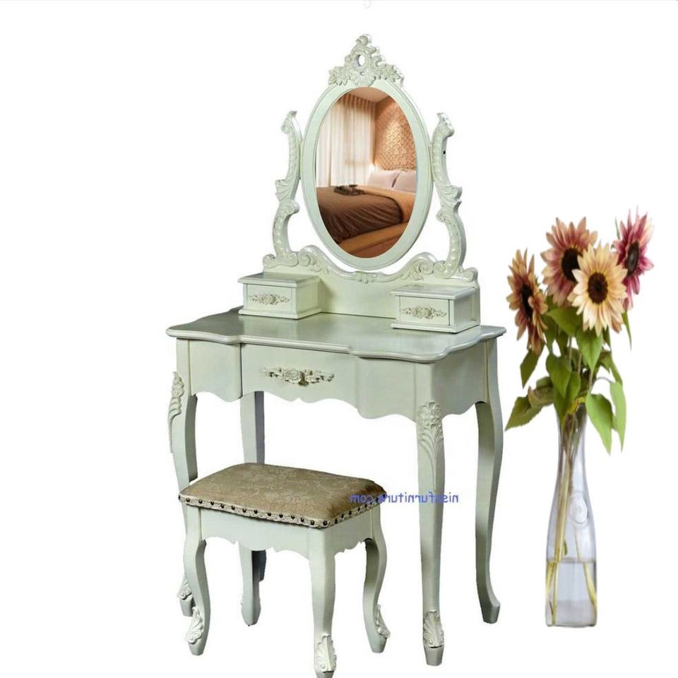 ชุดโต๊ะเครื่องแป้งกระจกใบไม้สีขาว
