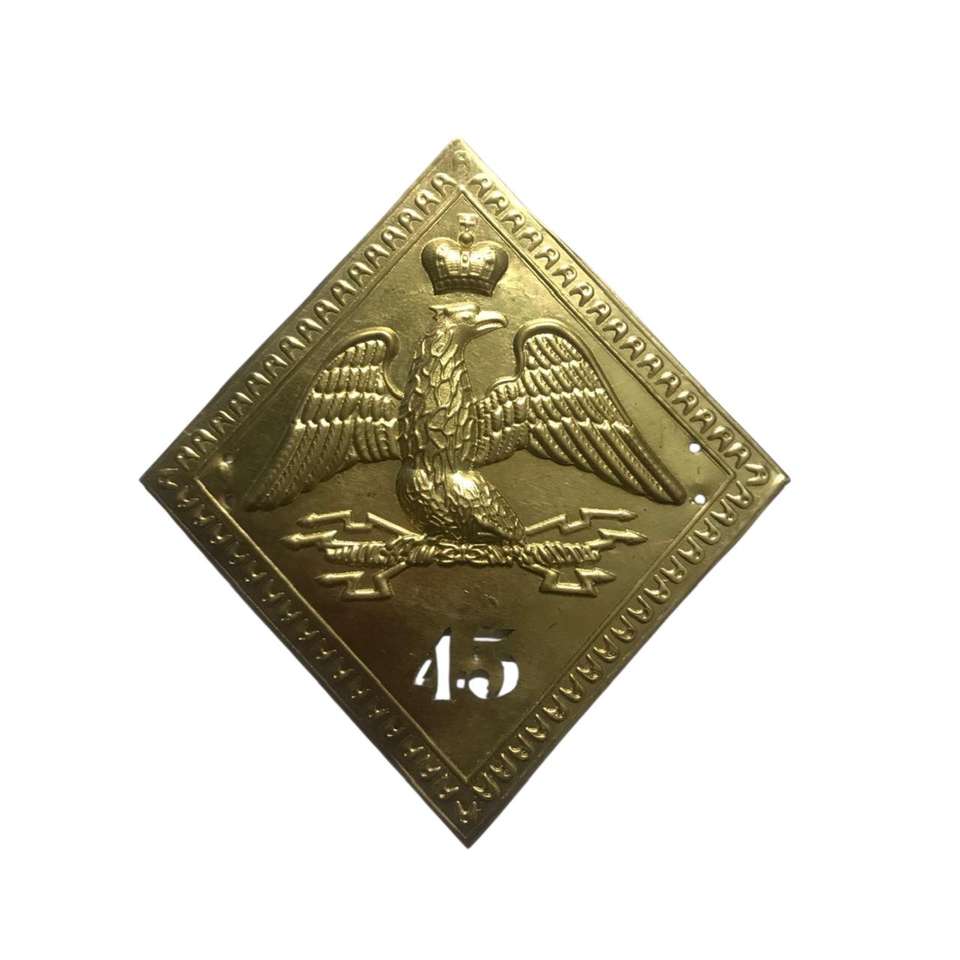 จานชักโก้ลายเพชรยุคสมัยนโปเลียนฝรั่งเศส ปี 1806 สำหรับกองทหารราบที่ 45