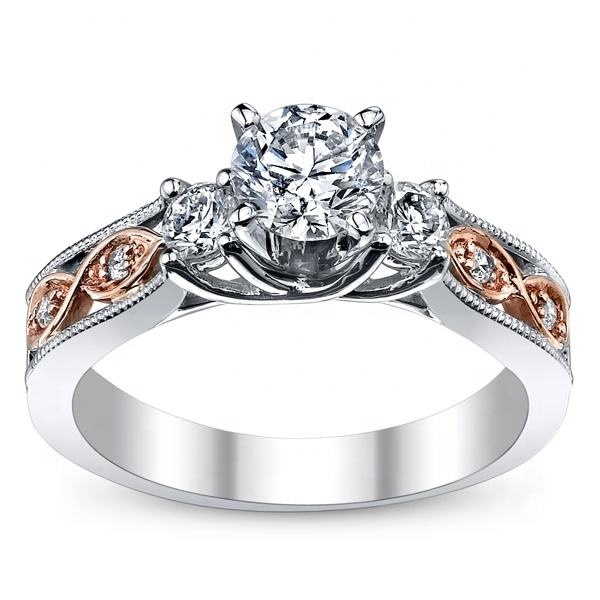 แหวนหมั้นและแต่งงานประดับเพชรเม็ดฝรั่งเศสขนาด14K เพชรสีขาวทองสำหรับปลูกในห้องปฏิบัติการ