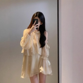 French Pearl Women's Off-Shoulder One-Piece Sweet Petite Skirt