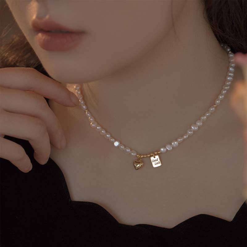 สร้อยคอผู้หญิงดีไซน์ฝรั่งเศสสไตล์เรโทรบาโรก ประดับมุกน้ำจืด หรูหราเบาๆ สายคล้องคอแฟชั่น ชุดเครื่องประดับ