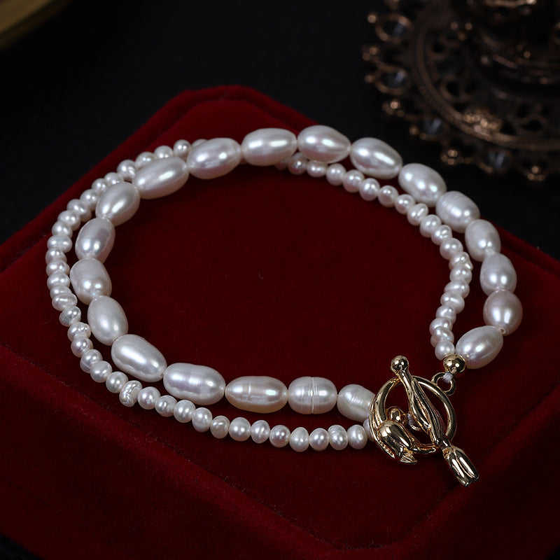 สร้อยข้อมือไข่มุกน้ำจืดธรรมชาติสไตล์ฝรั่งเศสย้อนยุคแบบบาโรก สองชั้น หลายชั้น ขายส่ง