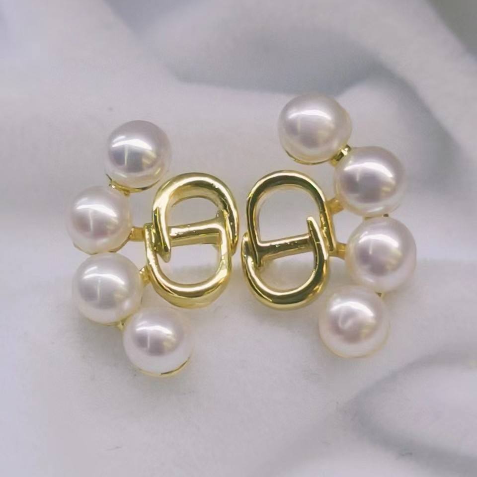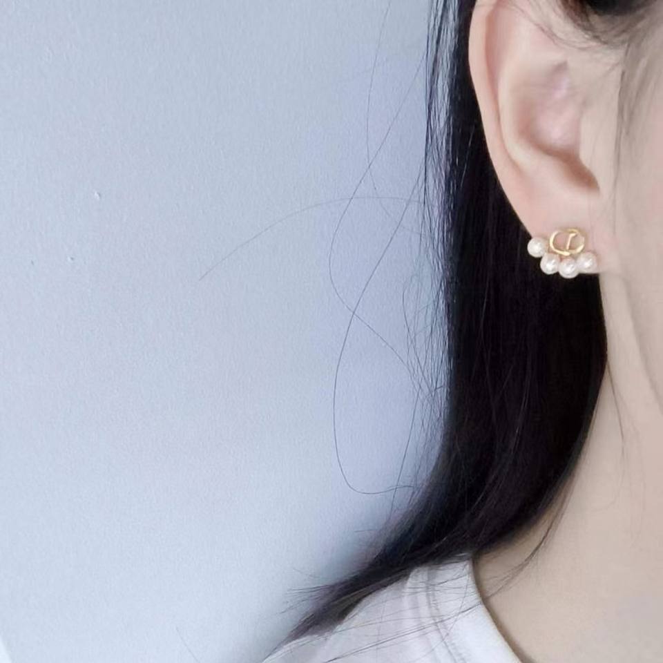 ต่างหูมุกน้ำจืดธรรมชาติเคลือบสีสไตล์ฝรั่งเศสแบบเรโทร ดีไซน์ตัวอักษร CD รักษาสีได้ คุณภาพสูง