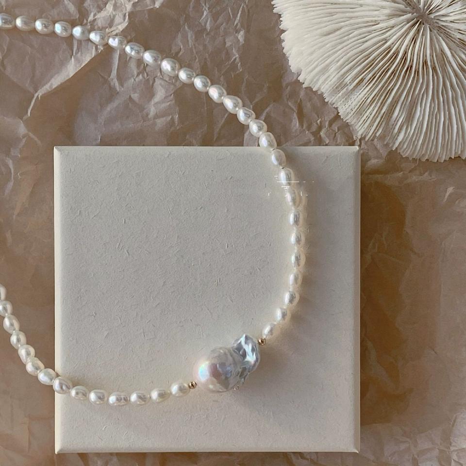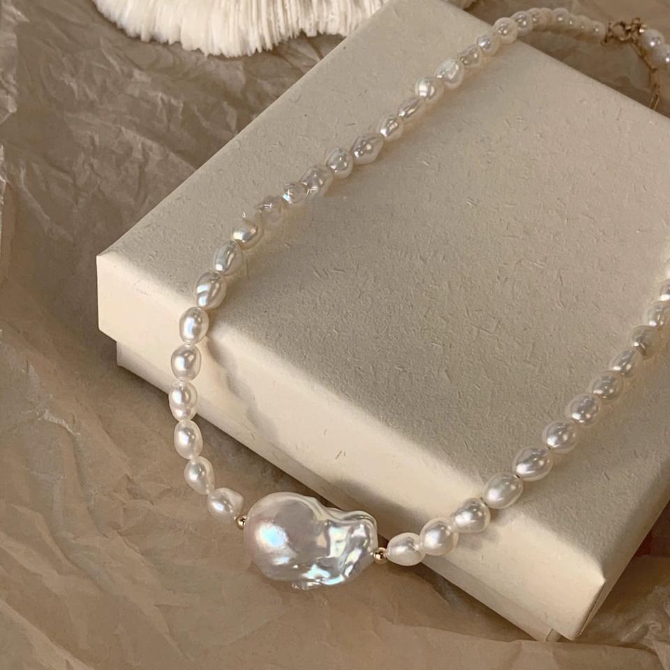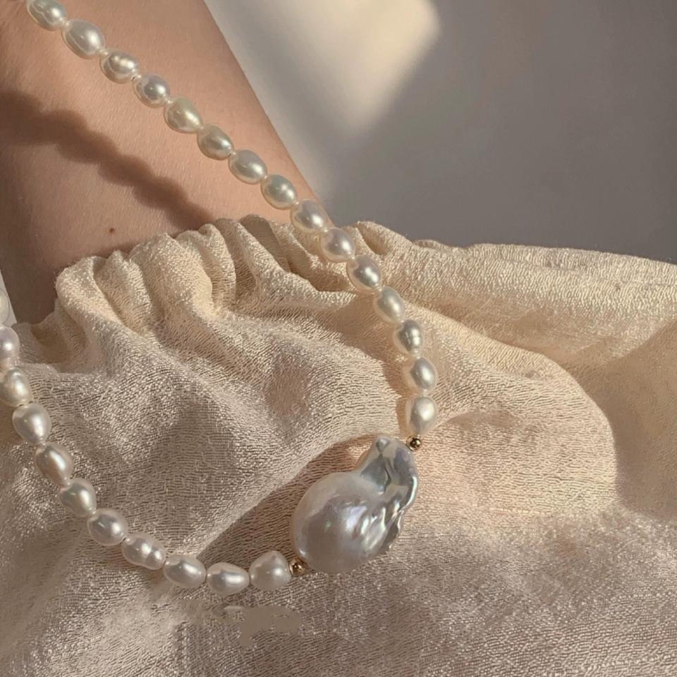 สร้อยคอมุกสไตล์ฝรั่งเศสย้อนยุคหรูหราแบบบาโรก ดีไซน์หางปลาขนาดใหญ่ พร้อมจี้ห้อยคอแบบธรรมชาติ