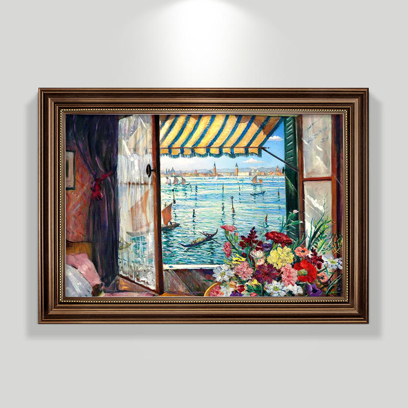 ภาพวาดสเปรย์สไตล์ยุโรปย้อนยุคฝรั่งเศสสำหรับตกแต่งร้านอาหารภูมิทัศน์แบบอเมริกันโต๊ะรับประทานอาหารศิลปะฝาผนังและประตูทางเข้า