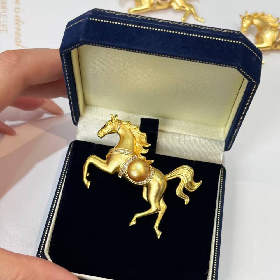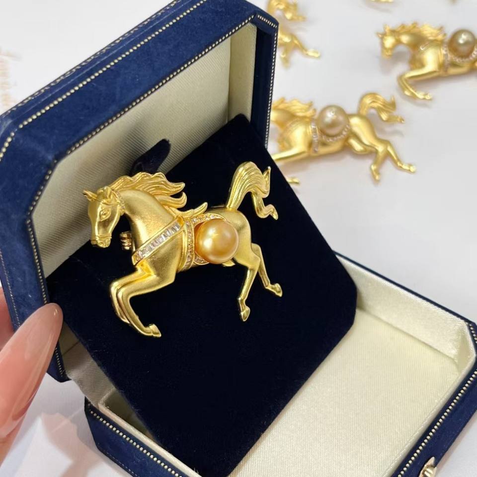 French Retro High-End Brooch Pins Luxury Antique Exquisite Anti-Glare Light Brooch for Pony Chest