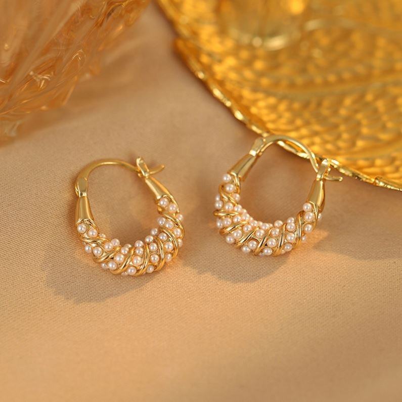 ต่างหูแบบติดหูสไตล์ฝรั่งเศสย้อนยุคหรูหราทันสมัยสำหรับผู้หญิง ชุบทองบนเงินทิเบต ประดับเพชรซิคอนและมุก