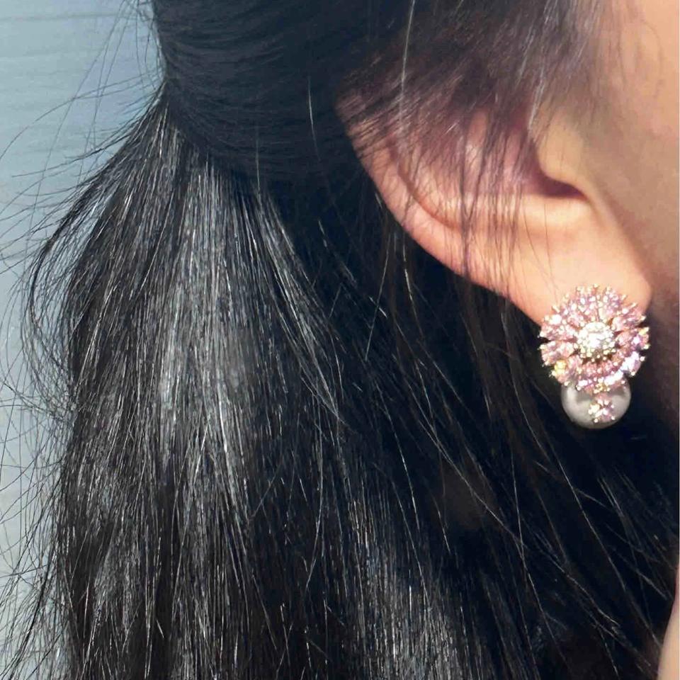 ต่างหูเงินแท้ S925 สไตล์ฝรั่งเศส ประดับด้วยเพทายสีชมพูหวาน ดีไซน์ดอกไม้ไข่มุก สวยสง่า ทันสมัย ให้ลุคแบบเรโทร