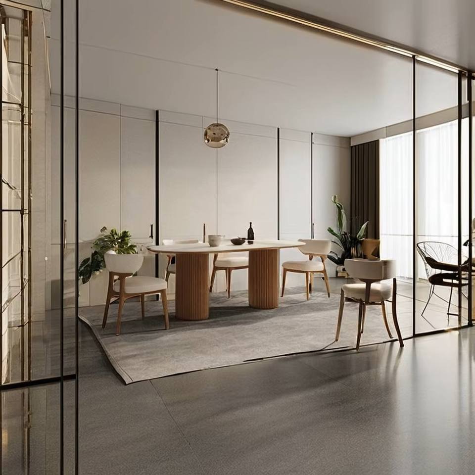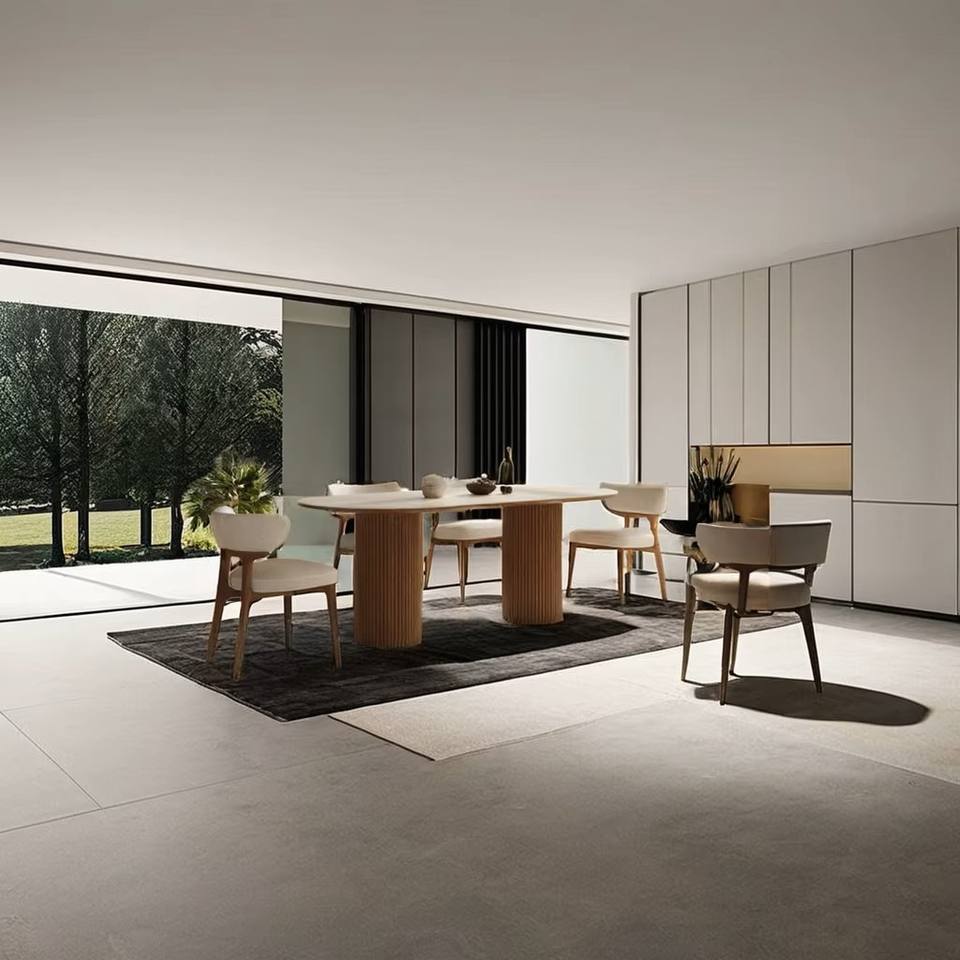โต๊ะอาหารไม้ทรงสี่เหลี่ยม | โต๊ะอาหารแบบมีร่อง | โต๊ะอาหารแบบมีฐาน | สไตล์ครีมโมเดิร์น | เป็นมิตรกับสิ่งแวดล้อมและทนทาน