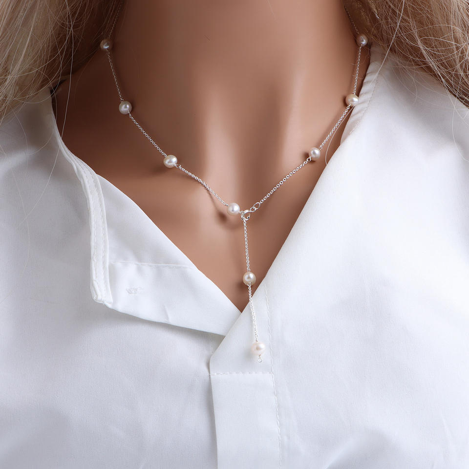 สร้อยคอไข่มุกน้ำจืดสไตล์ย้อนยุคฝรั่งเศสพร้อมโบว์เพทายและสร้อยกระดูกไหปลาร้าเครื่องประดับที่มีสไตล์
