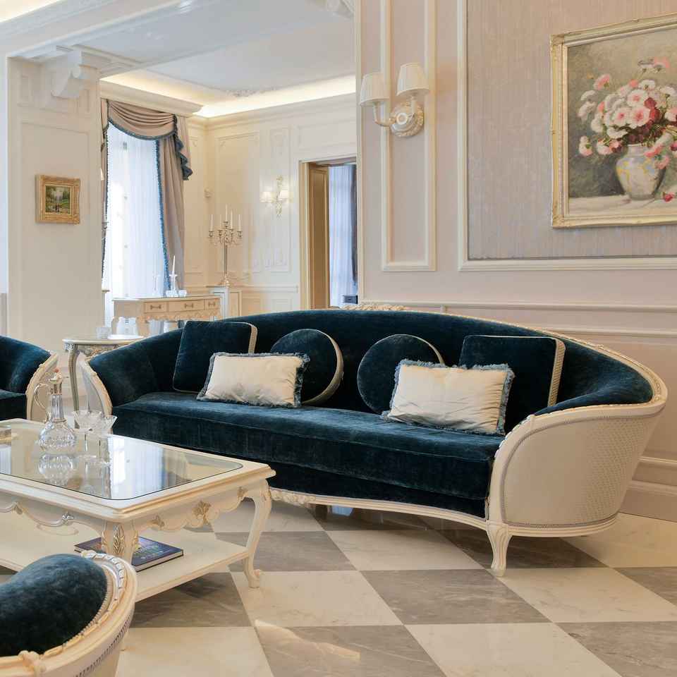 ชุดโซฟาฝรั่งเศสสุดหรูสำหรับห้องนั่งเล่น ทำจากไม้มะฮอกกานีคุณภาพสูงและวัสดุผ้า