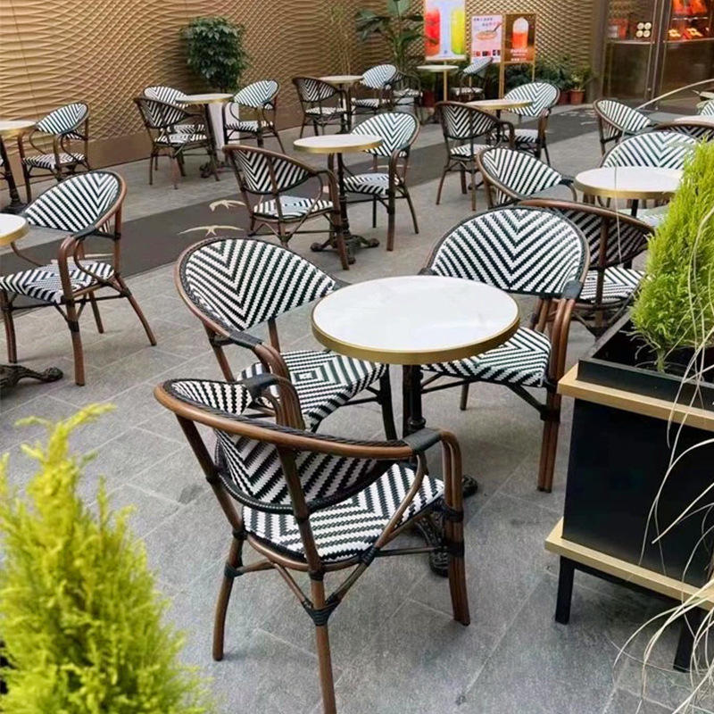 ชุดโต๊ะเก้าอี้หวายโลหะสไตล์ฝรั่งเศส ทนทานต่อสภาพอากาศ สำหรับรับประทานอาหารกลางแจ้ง รองรับ 6 ที่นั่ง ขนาดมาตรฐาน