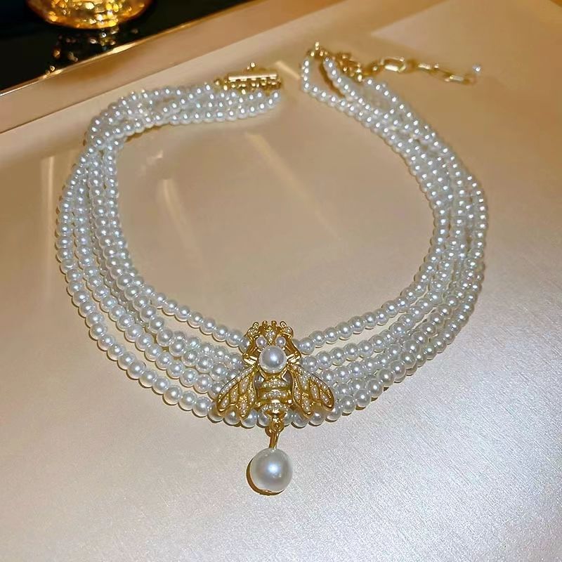 ชุดเครื่องประดับสไตล์ฝรั่งเศสย้อนยุคที่สง่างามสำหรับผู้หญิงสร้อยคอหลายชั้นต่างหูสร้อยข้อมือกับจี้ผึ้ง