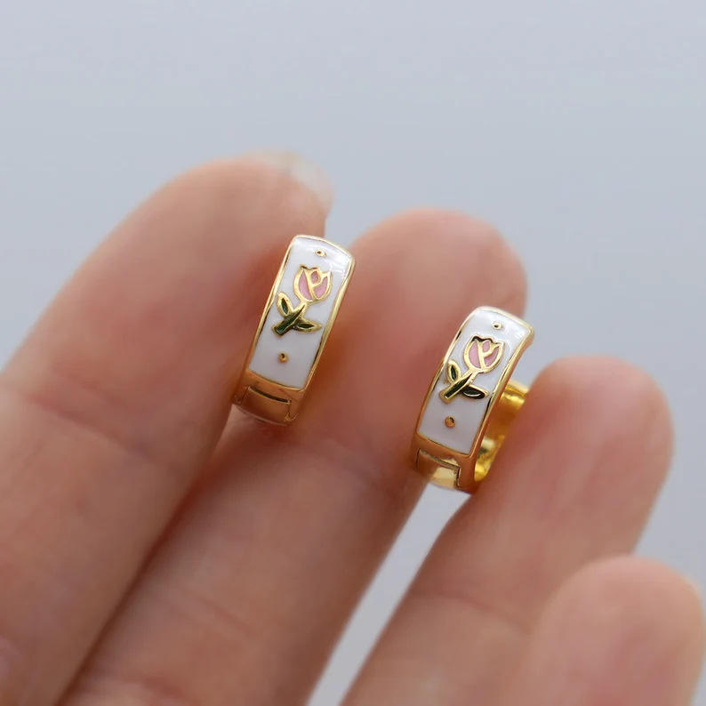 ต่างหูห่วงรูปดอกทิวลิปสไตล์ฝรั่งเศสแบบห่วงเคลือบสีอ่อนหรูหราสำหรับผู้หญิงเครื่องประดับอารมณ์ที่ไม่เหมือนใคร