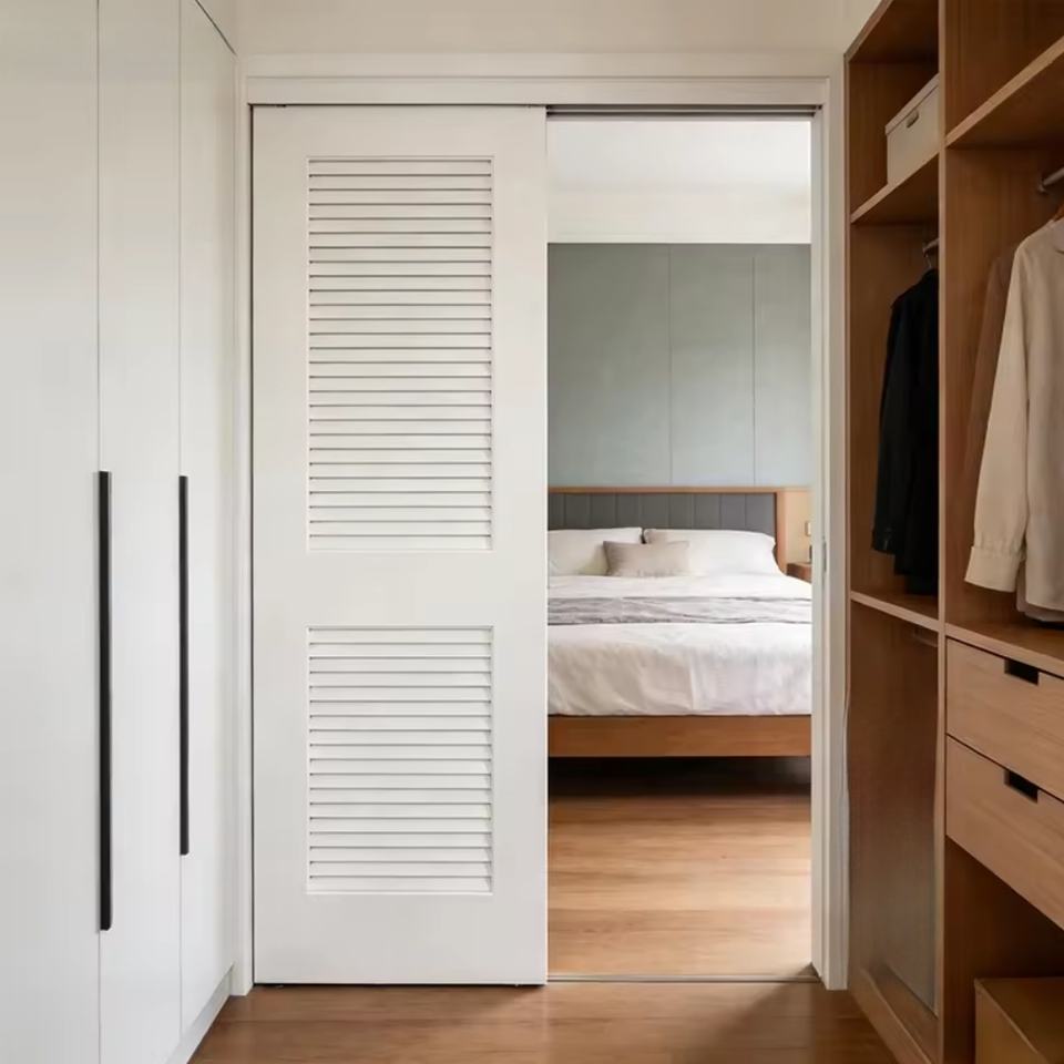 ประตูไม้ HDF แบบฝรั่งเศส โมเดิร์น บานพับคู่ ลายบานเกล็ด กันน้ำ สำหรับใช้ภายในห้องน้ำ ห้องนอน