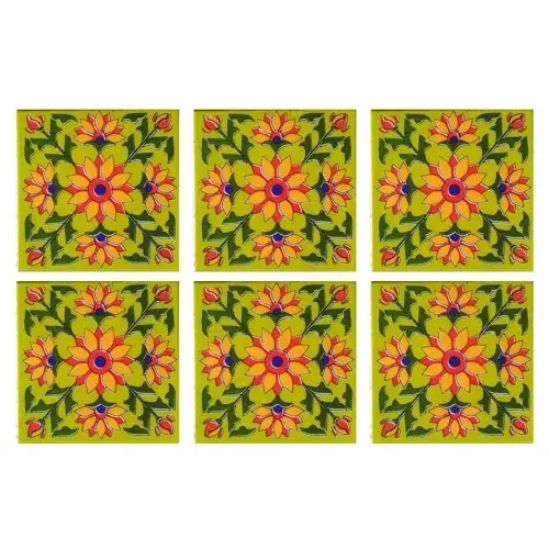 French Style Patterned Ceramic Tiles 4x4 Inch Home Decor Glossy Finish Firebrick Function Interior Use for Floor Wall Pack of 6
