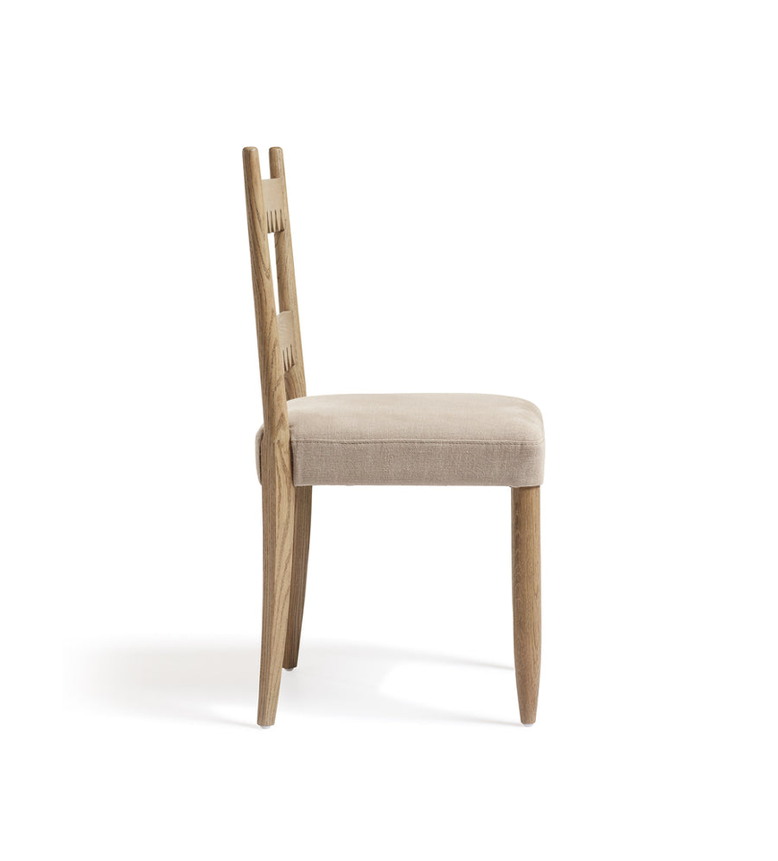เก้าอี้ทานข้าวไม้โอ๊คขอบหยักสไตล์ฝรั่งเศส พร้อมเบาะหุ้มผ้าสำหรับตกแต่งบ้าน