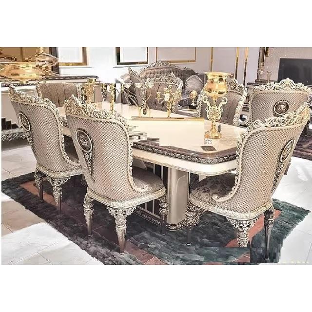 ชุดโต๊ะอาหารสำเร็จรูปสีเงินพร้อมเก้าอี้สไตล์ฝรั่งเศสชุดรับประทานอาหาร7ชิ้นชุดห้องอาหารโลหะที่ทันสมัย